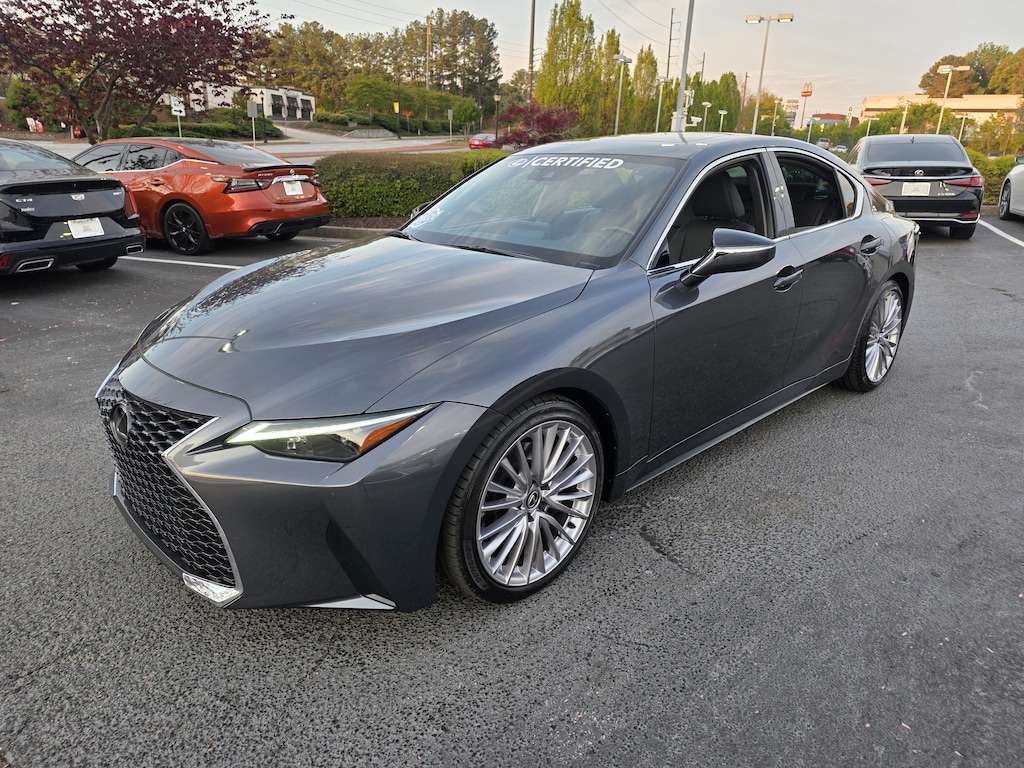 Certified. Clean CARFAX. 2025 Lexus IS 300 Cloudburst Gray 8-Way Power Adjustable Front Seats, Active Cruise Control, AM/FM radio: SiriusXM, Apple CarPlay/Android Auto, Auto High-beam Headlights, Auto-Dimming Outside Mirrors with Tilt-Down Reverse, Auto-Dimming Rearview Mirror with HomeLink System, Automatic temperature control, Emergency communication system: Safety Connect (3-year trial), Exterior Parking Camera Rear, Front Door Scuff Plates, Heated and Ventilated Front Seats, Heated Leather Trim Steering Wheel, Lexus Memory System For Driver's Seat, Power Rear Sunshade, Power Tilt and Slide Moon Roof, Power Tilt and Telescoping Steering Wheel, Premium Package, Radio: Lexus Multimedia System with 8.0 Touchscreen Display, Rain-Sensing Intermittent Windshield Wipers, Rear Armrest with Cupholders, Steering wheel mounted audio controls, Telescoping steering wheel, Tilt steering wheel, Wheels: 19 Split-10-Spoke Alloy, Wood Trim.CARFAX One-Owner. Odometer is 2256 miles below market average! 21/31 City/Highway MPG